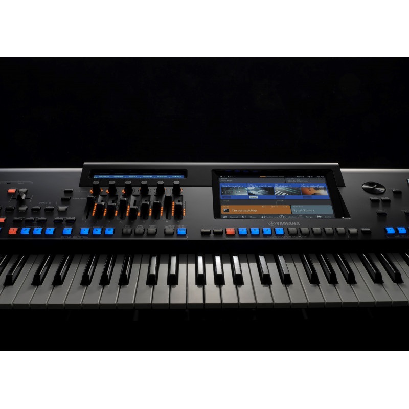 Clavier 76 touches toucher FSX avec after-touch plus performant pour un meilleur contrôle Un total de 1 990 sonorités et 75 kits Drum/SFX Inclus un générateur de sons FM Polyphonie maximale de 384 notes (128 pour les sonorités AWM prédéfinies + 128 pour les sonorités AWM d’extension + 128 pour les sonorités FM) Au total, 800 styles (720 Pro, 69 Sessions, 11 Free Play) Nouveaux kits ‘Ambient Drums’ Nouvel écran tactile TFT couleur large VGA de 9 pouces (800 x 480 points) – anti-reflet et deux fois plus lumineux que le Genos avec un sous-écran LCD VA (LIVE CONTROL View) avec mode clair/foncé